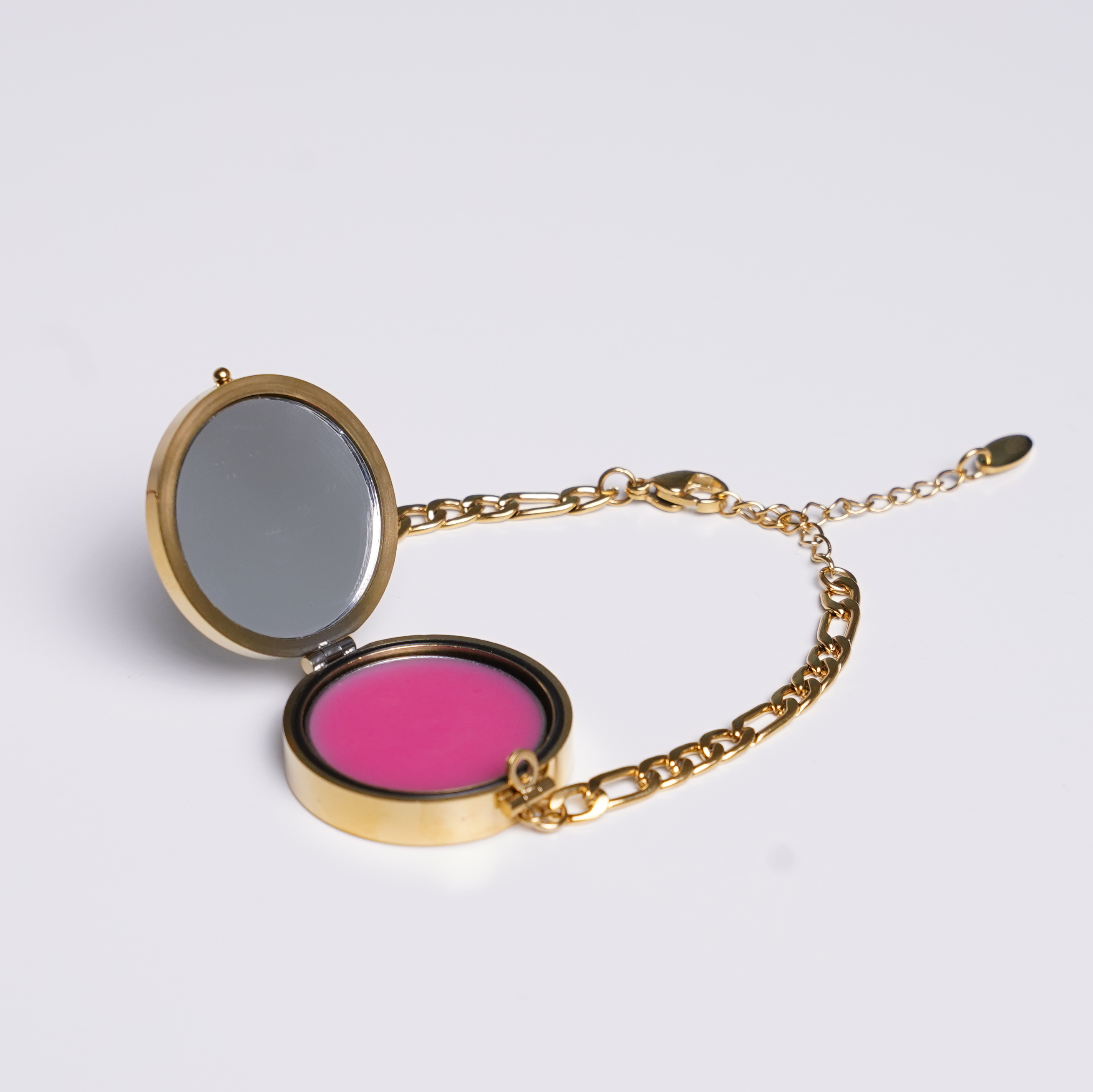 Ein Lippenbalsam-Armband kombiniert eleganten Schmuck mit praktischer Funktion. So hast du pflegende Pflege immer dabei, ohne in der Tasche suchen zu müssen.